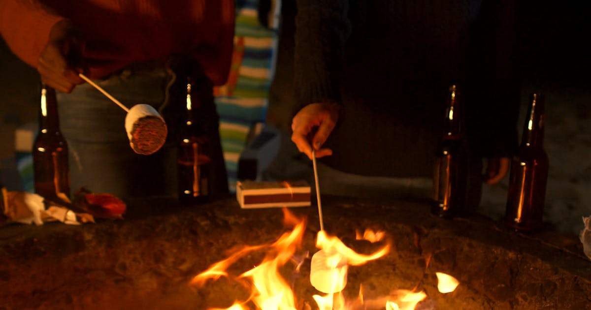 Next, we gather yummy marshmallows and chocolate to make sweet, gooey s'mores over a campfire.