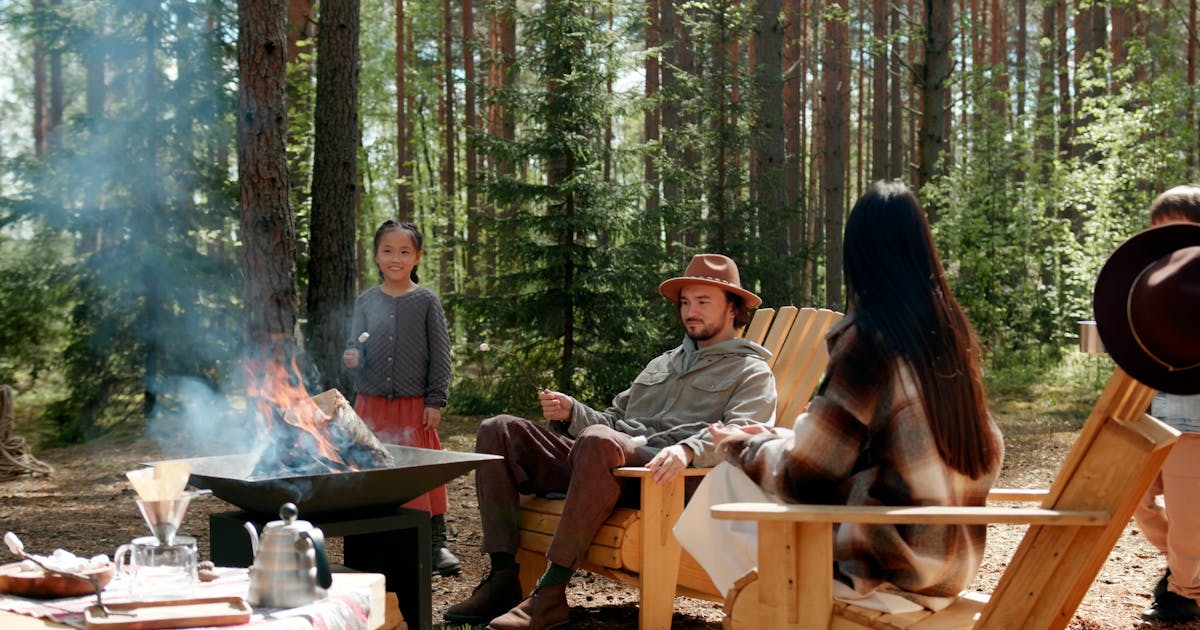 As the sun went down, a cozy campfire crackled and danced. They roasted puffy marshmallows until they were golden brown and gooey. 'This is the best snack ever!' Mia declared with a sticky smile.