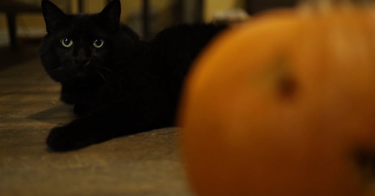 Next, Cleo the Cat shows off her magic. She jumps into a tall black hat and pops out wearing a tiny purple bowtie. She is a clever magician!