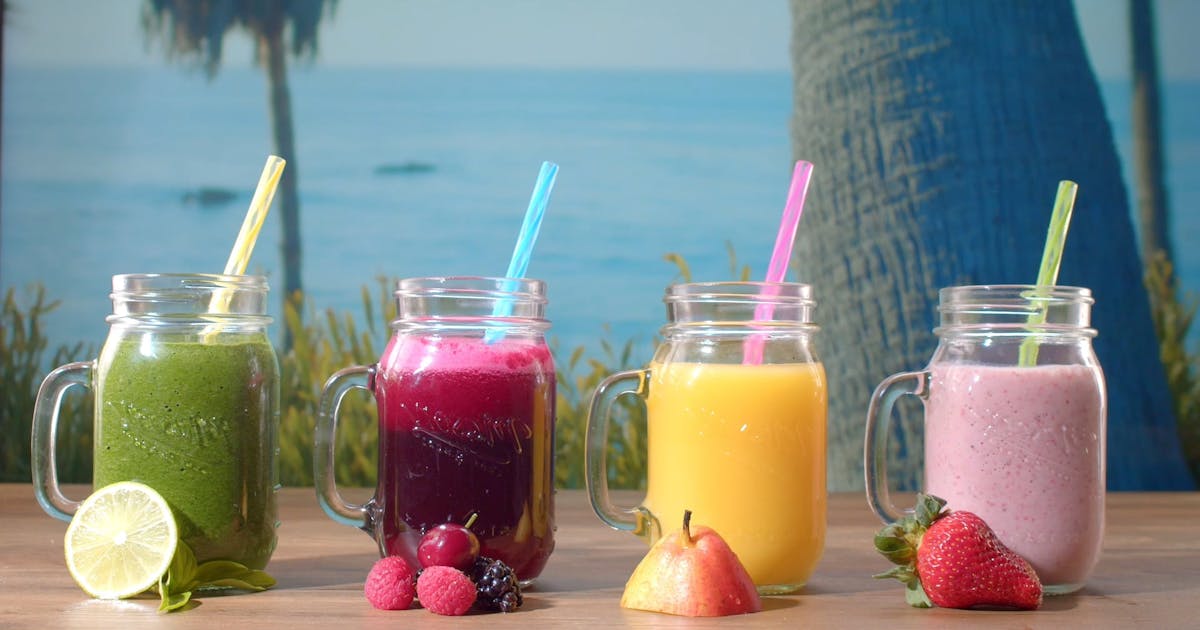 Finally, 'pour' the smoothie into a tall glass. Add a straw and take a 'sip'. It tastes 'delicious' and 'refreshing'!